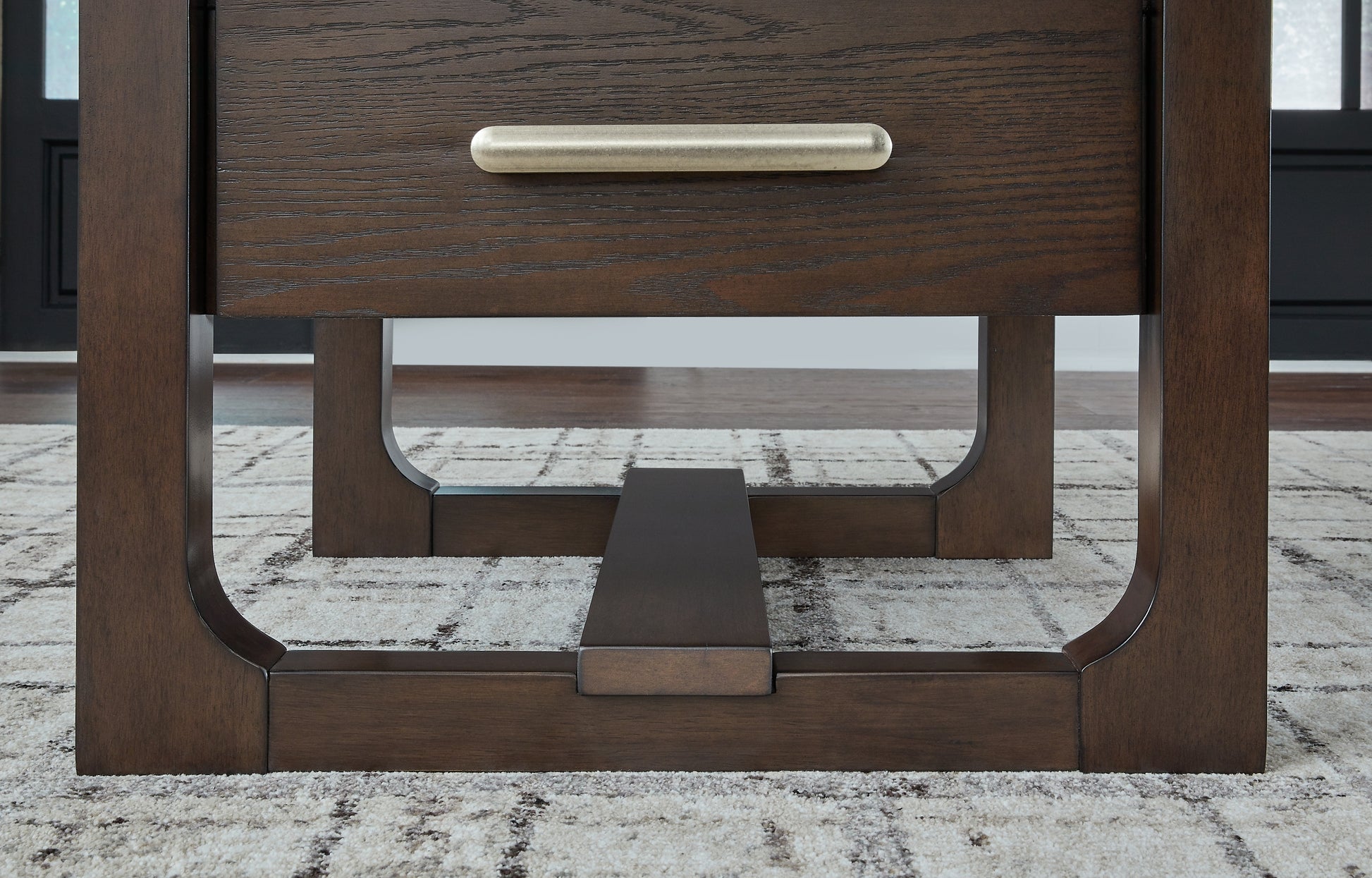 Details Made with hardwood solids, hickory veneer and MDF substrate, Dark brown wood-tone finish, Bar pull with polished pewter-tone finish, Single smooth-gliding drawer, Assembly required