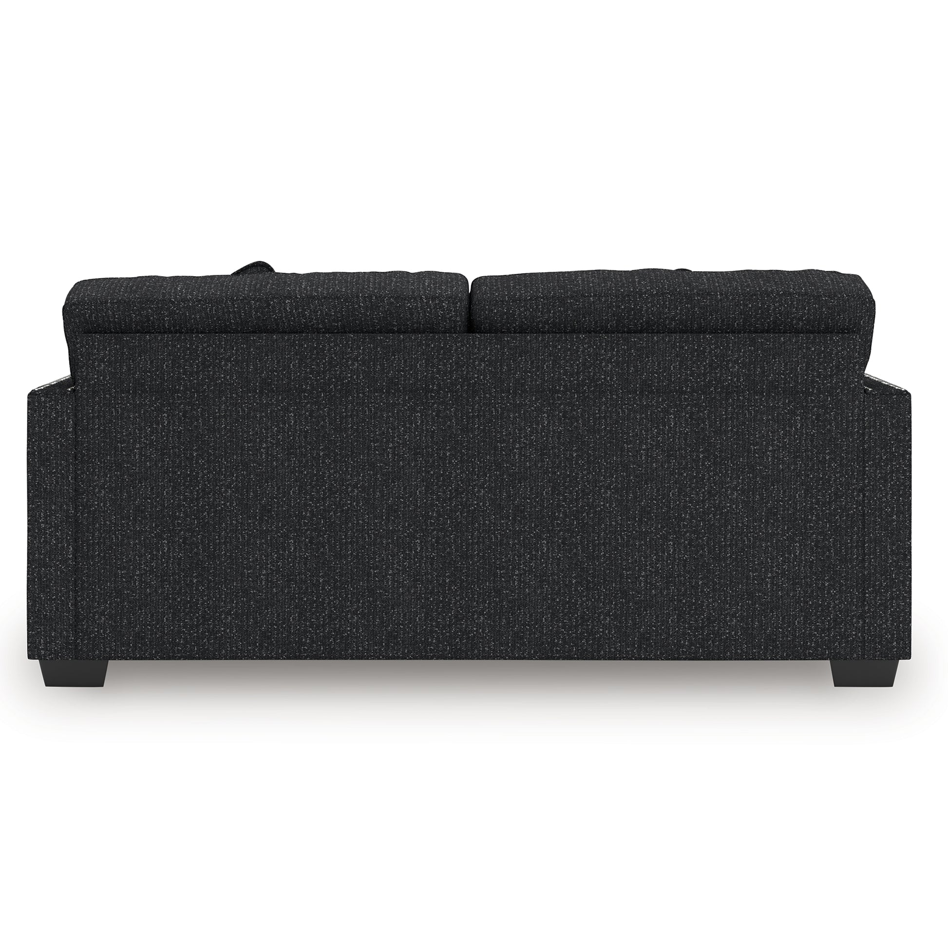 This stunning sofa leaves a lasting impression. Its cozy cushions, chic coal-colored upholstery and striking nailhead trim are a perfect blend of comfort and contemporary design. And here’s the showstopper—ambient red, white and blue LED lighting along the sofa's base. The look is simply wow.