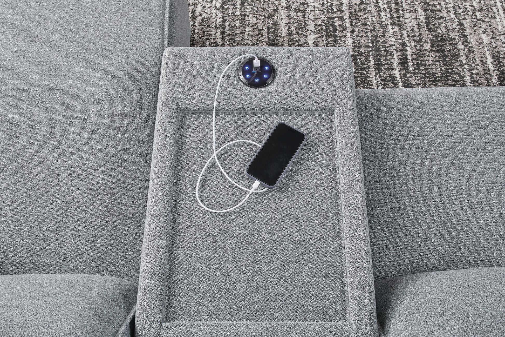 | Details | Includes 6 modular pieces: left-arm facing power recliner, 2 armless chairs, console, wedge and right-arm facing power recliner, "Left-arm" and "right-arm" describe the position of the arm when you face the piece, Versatile modular pieces fit together in a variety of configurations, One-touch power control with adjustable positions, Easy View™ adjustable headrest and zero-draw USB port, Zero-draw technology only consumes power when the USB receptacle is in use, Corner-blocked frame with metal reinforced seat, Attached back and seat cushions; high-quality foam cushions wrapped in poly fiber, Polyester upholstery; Next-Gen Nuvella™ is a family-friendly fabric that is soft, easy to clean, stain-resistant and durable, Clean fabric with mild soap and water, let air dry; for stubborn stains, use a solution of 4 oz. bleach to 28 oz. water, Throw pillows with easy-to-remove zippered covers for machine washing; pillows with soft polyfill, Console with plexiglass top and 2 cup holders, Zero wall recliner design requires minimal space between wall and chair back, Power cord included; UL Listed | |