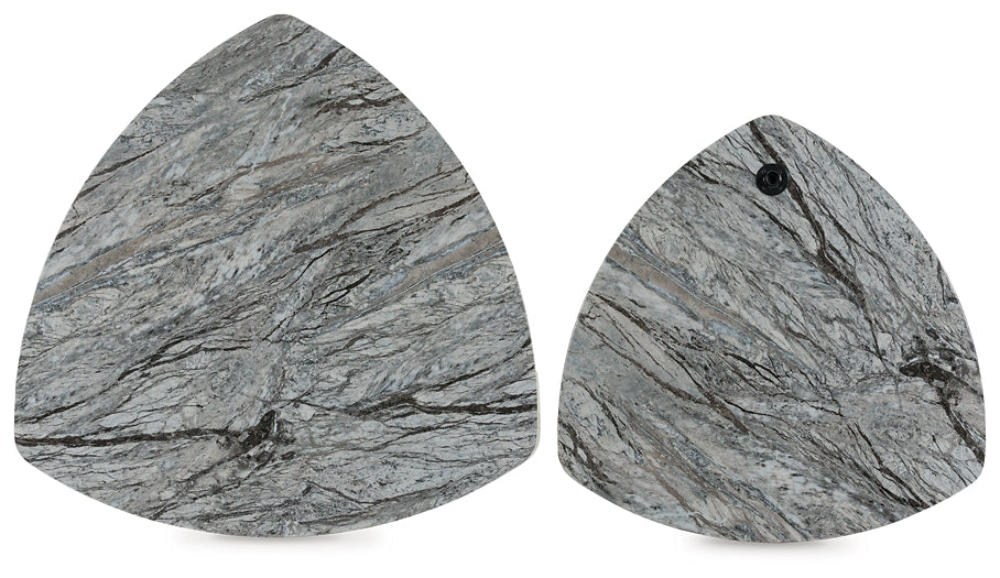 Details Made with decorative laminates and MDF substrate, Tabletops with gray faux marble, Legs with replicated weathered gray wood grain, Integrated pivoting lower table, Assembly required